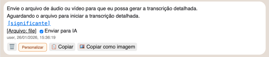 Em algum momento, pode ser que você receba uma mensagem como esta. Vai encontrar a etiqueta [Significante], esta etiqueta é a forma de encontramos de entregar informações técnicas úteis sem poluir muito a resposta. 99% dos nossos usuários nunca precisarão ver o que tem dentro desta tag. Mas, se você não conseguir fazer o que quer ou se a resposta te devolver um erro, pode ser que dentro desta tag tenha a explicação técnica sobre o erro. Então, se for pedir ajuda pra gente, por favor, clique no botão “Copia” que ele vai copiar todo o conteúdo, incluindo a etiqueta [significante] e nos envie. Assim teremos uma noção melhor sobre que está te incomodando.